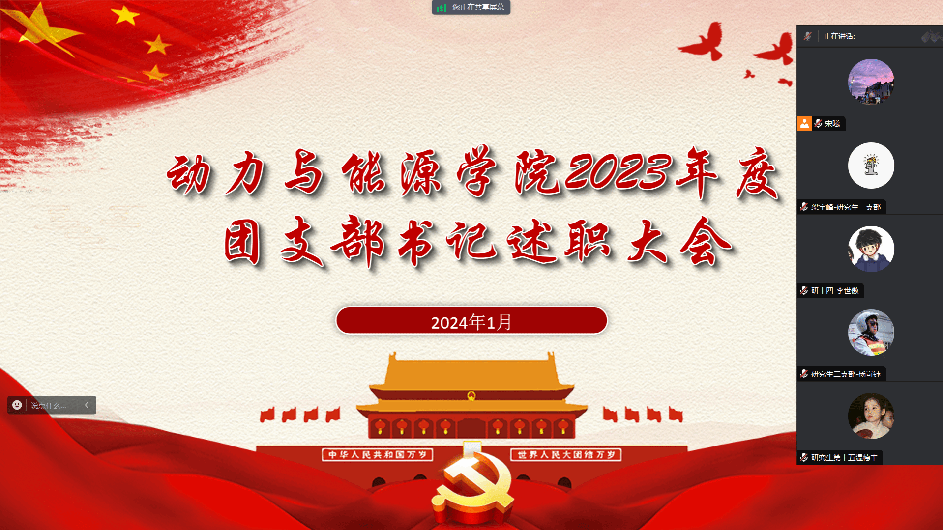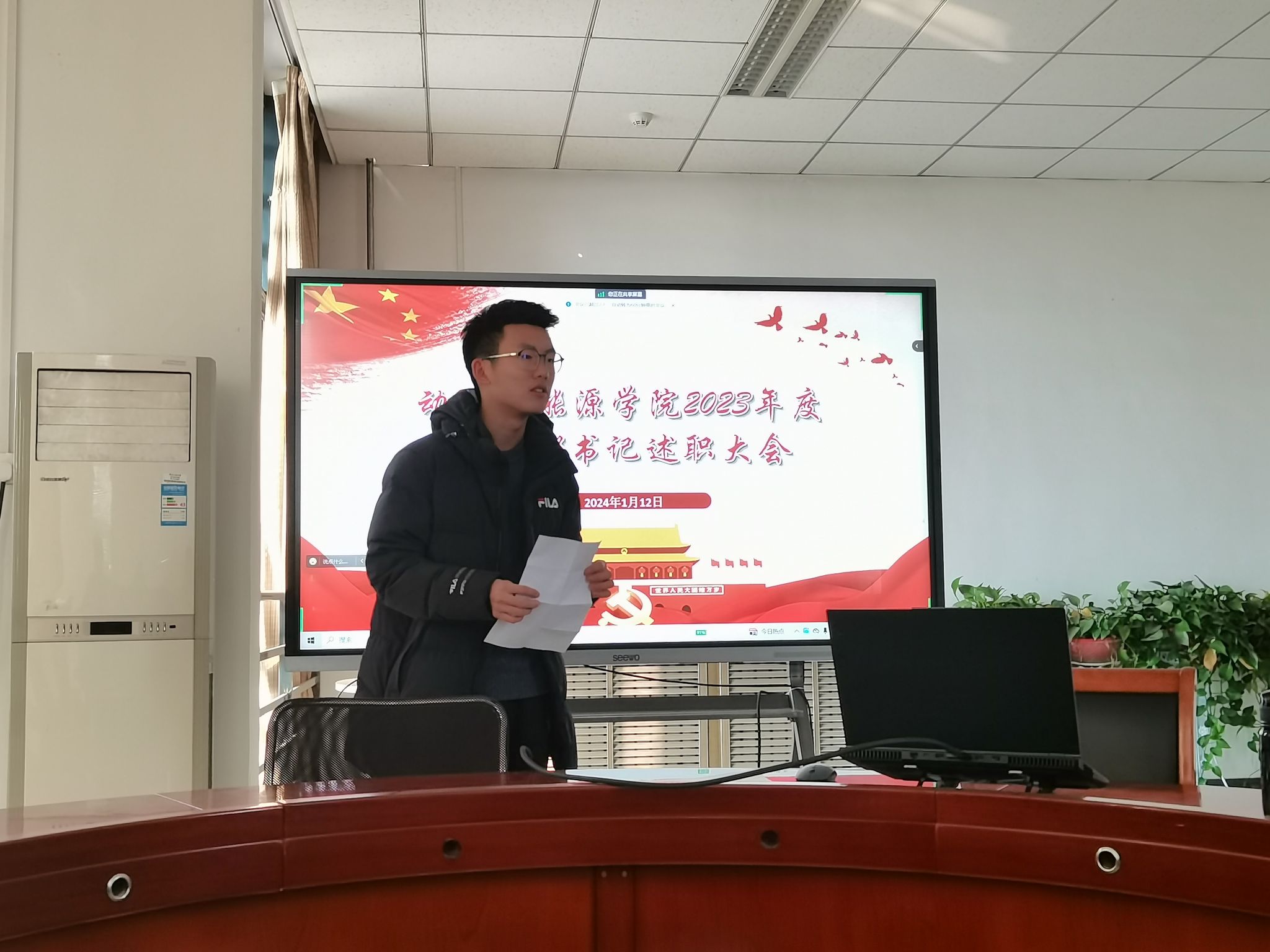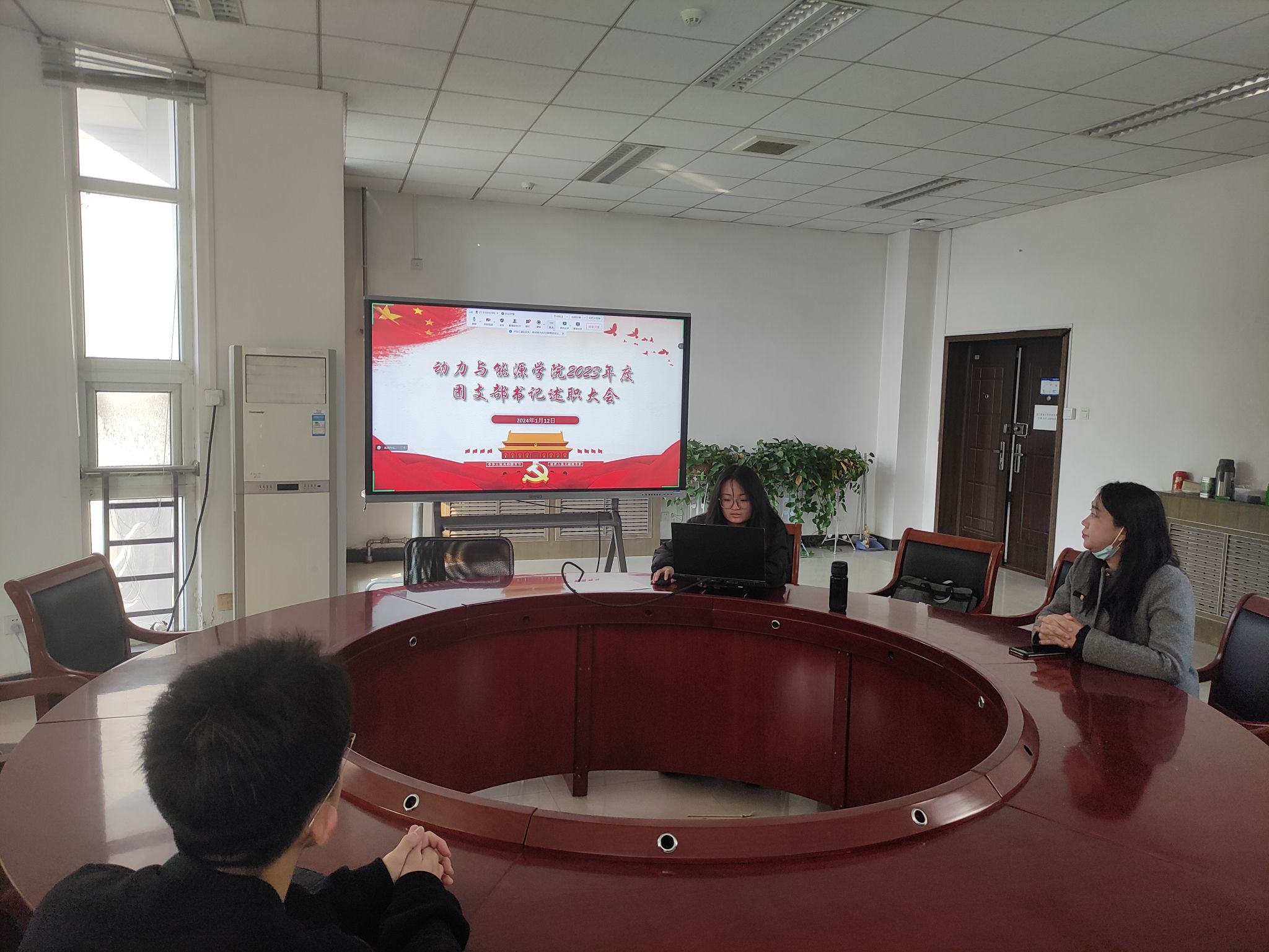 团委书记姜倩、兼职辅导员汪李翔、副书记姬旭阳、各年级大班团支书参与此次会议,学院57名团支部书记做2023年度述职汇报。