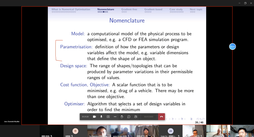 《工程设计中的梯度优化算法》课程的授课老师Jens-Dominik Müller博士是伦敦玛丽女王大学的教授,他在计算流体力学和空气动力学优化方面学术造诣深厚,工程经验丰富。这门课程主要介绍基于梯度的优化方法原理及其应用。同时介绍利用自动微分软件TAPENADE开发梯度计算模块,利用Fortran语言进行优化程序的编写、测试和应用。