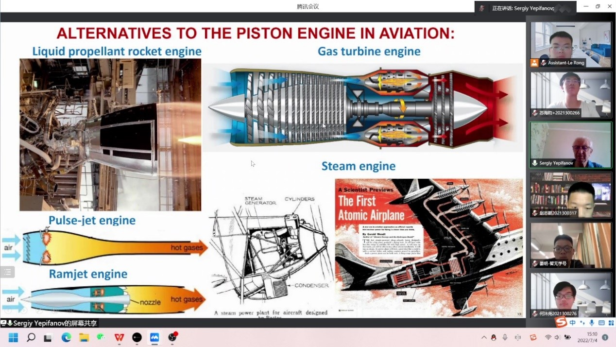 《喷气发动机原理》暑期课堂于2022年7月4日至2022年7月15日开设,在《喷气发动机原理》课程中,Sergiy Yepifanov教授以PPT远程授课的形式给同学们讲解了喷气发动机的发展历程、喷气发动机典型部件、喷气发动机部件性能计算方法、喷气发动机总体性能计算方法以及发动机性能仿真计算等内容。Yepifanov教授的授课内容丰富,讲解细致,且时刻关心同学们的学习进度,时常询问我们是否理解授课内容,并且会针对同学们提出的问题进行耐心细致的解答。