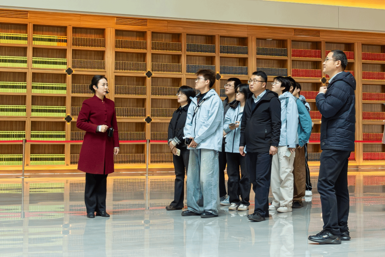 随后,大家进入文济阁进行参观。文济阁作为西安国家版本馆的主体建筑,中轴对称、庄严肃穆。在这里,大家欣赏珍贵的版本资源,沉浸于浓厚的文化氛围,仿佛置身于历史与现代交织的时空之中,深刻体会到中华文化的博大精深。