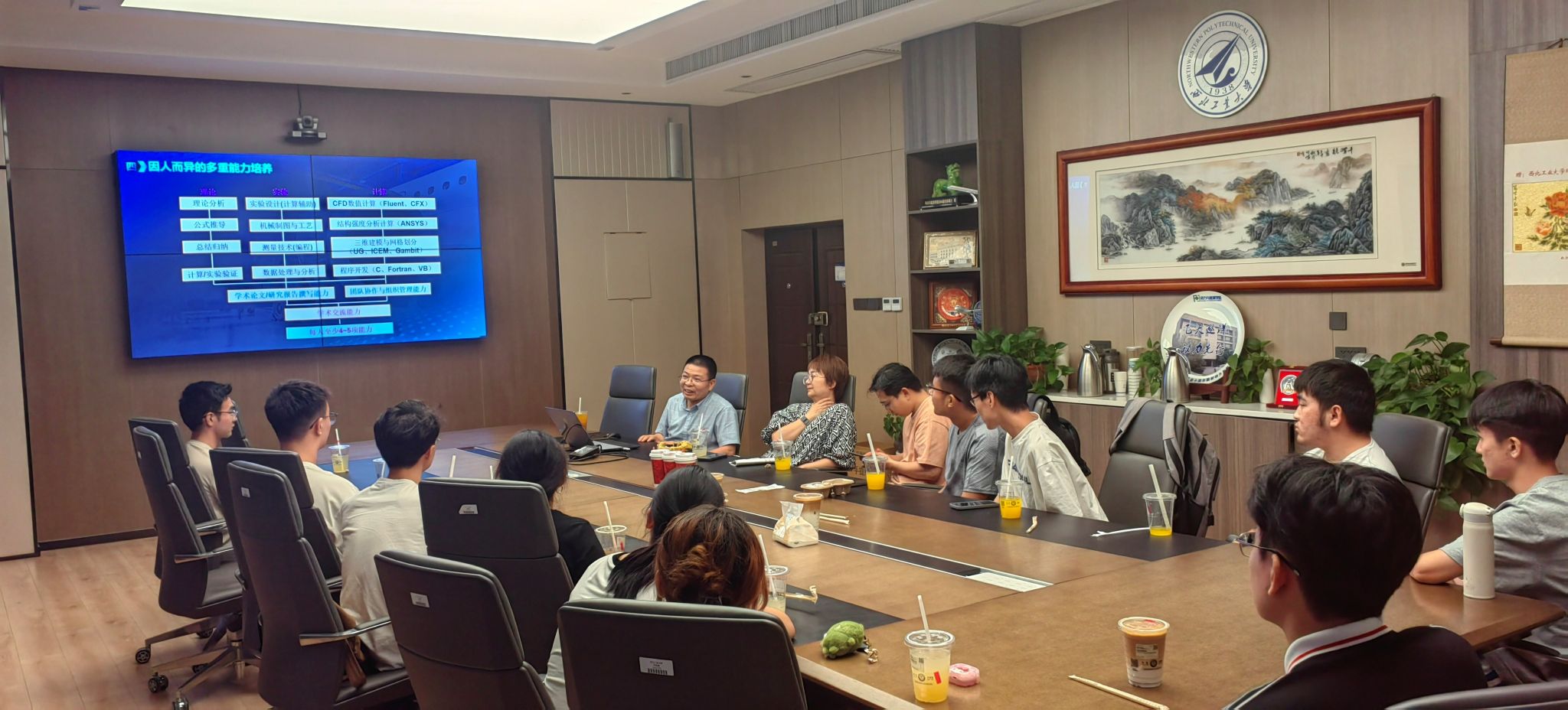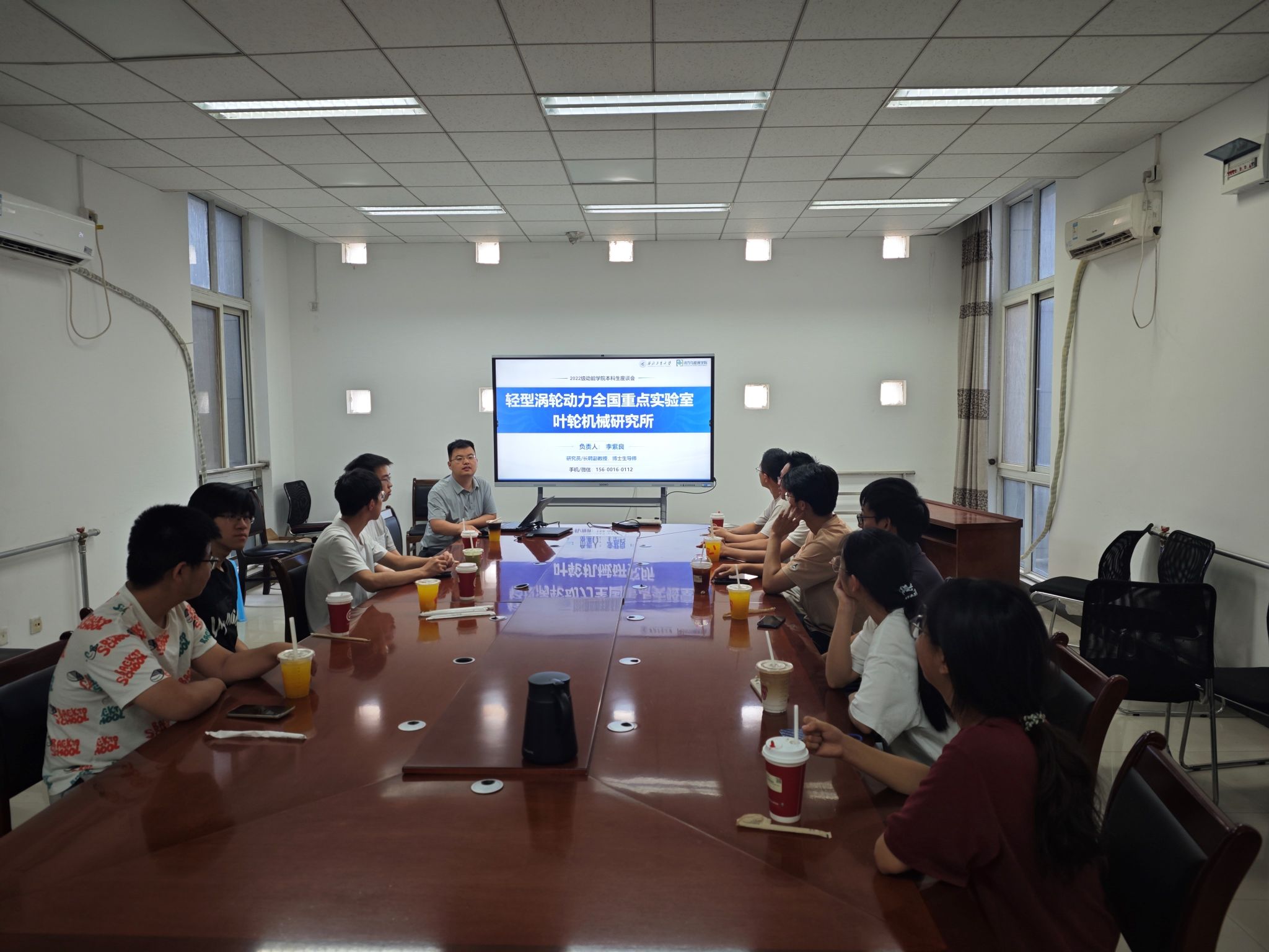 第十六期“咖啡沙龙”,王掩刚老师与20名学生参加了活动。王老师从团队基本情况、主要研究方向和研究成果和研究生培养等方面介绍了叶轮机械流动诊断与控制团队。王老师结合自己的求学和职业生涯,建议大家找到自己所热爱的研究方向并坚持。学生们就“商业软件的使用”、“研究生选择研究方向和导师”、“本科阶段和研究生阶段的规划”、“研究生就业”等问题向王老师请教,王老师做了细致的回答并给出了建议。