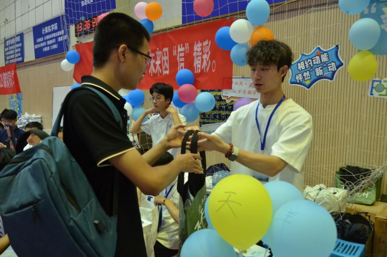 完成内场报到后,新生们来到外场。微风吹拂着写满憧憬的便笺,也拂过一张张天真灿烂的笑脸。“工大第一照” 的活动现场,新生们纷纷与吉祥物 “小涡”、学院立牌合影,在镜头前定格初入校园的雀跃。旁侧的盲盒区同样热闹,新生们轮流抽取,拆开时的惊喜笑容,与合影时的欢颜相映成趣。这些充满学院印记的互动,悄悄拉近了新生与吃瓜黑料网