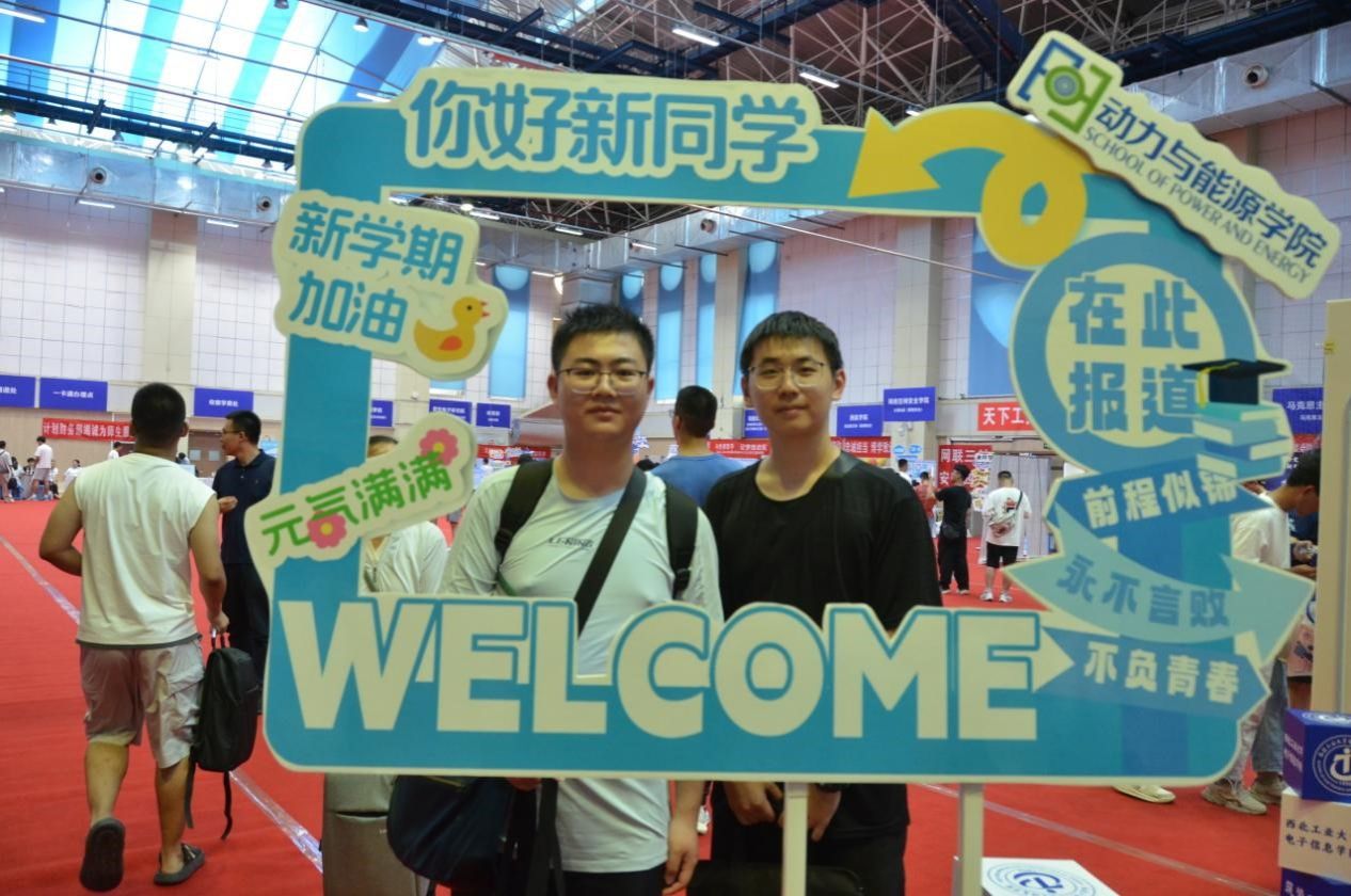 同学们到达内场,递上身份证,确认个人信息,拿到属于自己的一卡通,最后在展板处合影,欢迎你成为一名动能人。