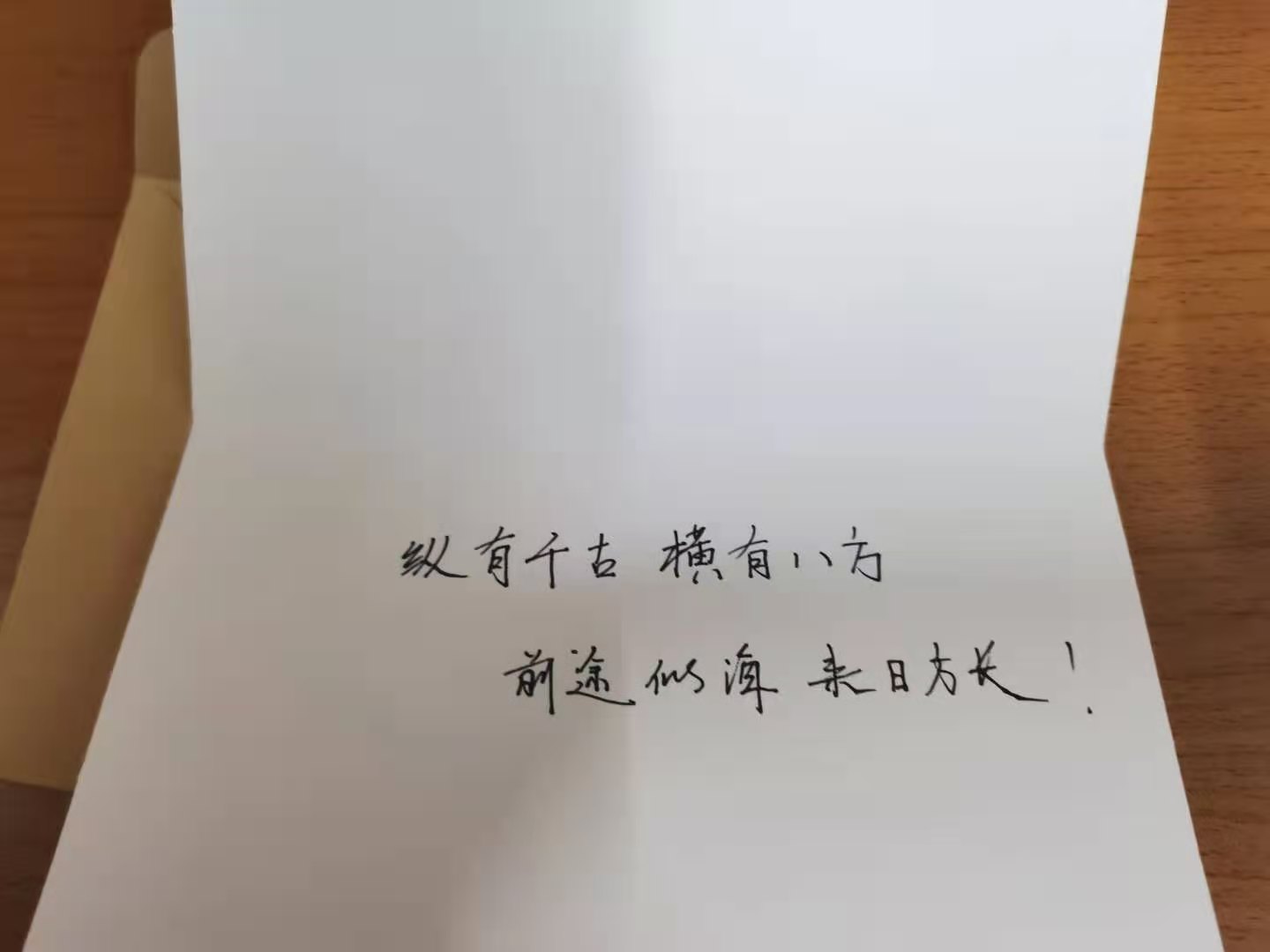 “毕业了,我要离开这个住了两年半的宿舍。如果你看到了这一段文字,想必你是下一个要入住这里的人。我相信,你曾经披星戴月苦奋战,试卷题海;现在寒窗苦读数载,苦尽甘来。祝你来到了这个学府,如果你是一名研究生,在这个地方你一定可以大有所为,把握好这里的资源,书写你自己的经历,希望你能够不虚此行!”