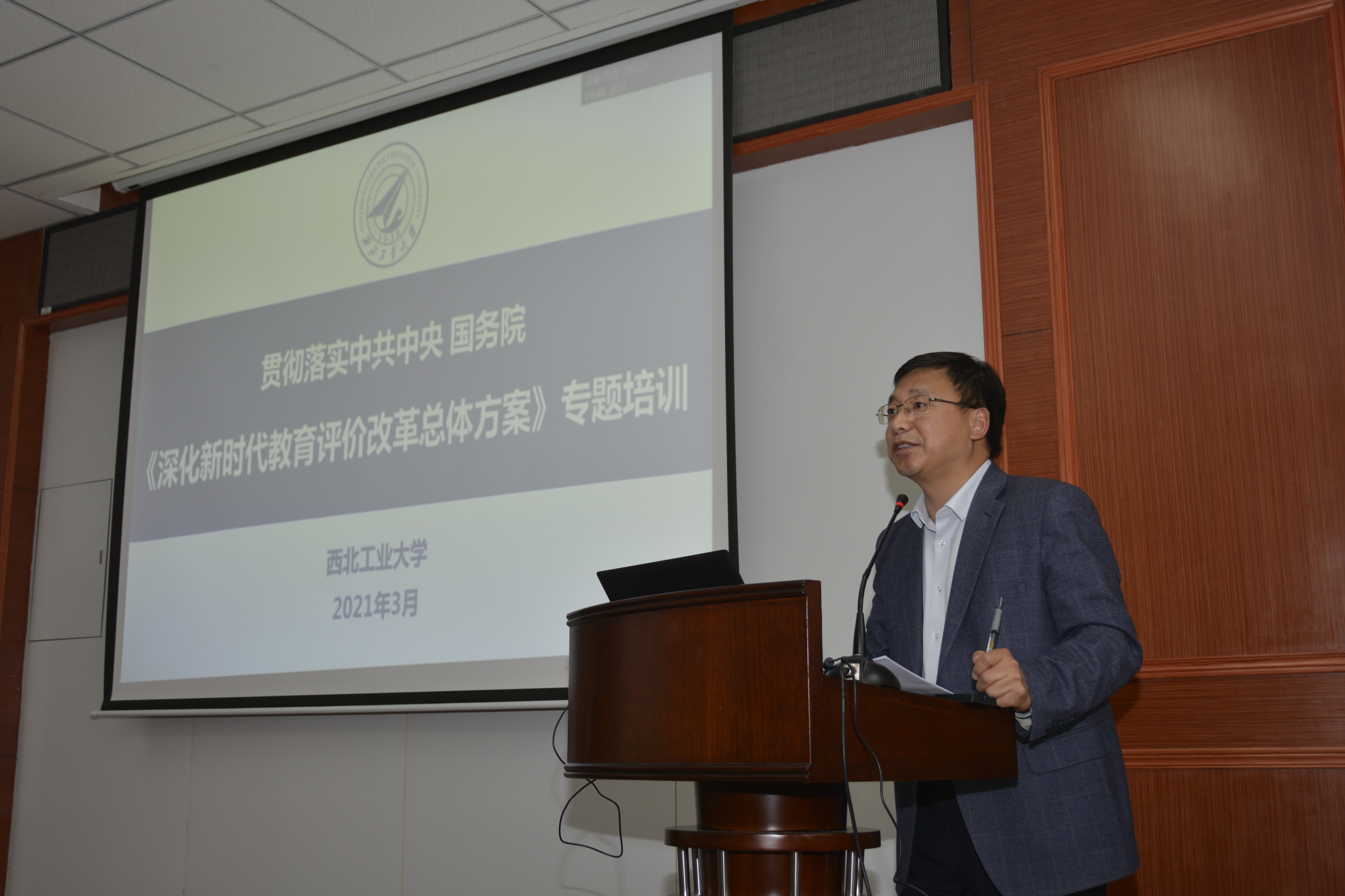 会上,王占学院长对《深化新时代教育评价改革总体方案》进行了全文解读。王占学指出,《深化新时代教育评价改革总体方案》是新中国第一个教育评价系统性文件,是指导深化新时代教育评价改革的纲领性文件,《深化新时代教育评价改革总体方案》的颁布实施为高校全面贯彻党的教育方针,破除“五唯”顽瘴痼疾,引导全党全社会树立科学的教育发展观、人才成长观、选人用人观具有重大意义。