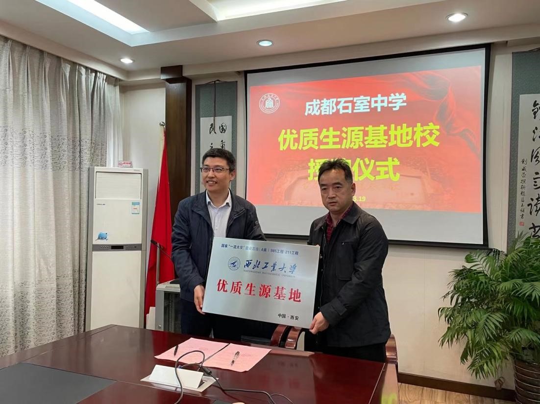 与石室中学签订了优秀生源基地协议,并进行了优质生源基地授牌仪式。