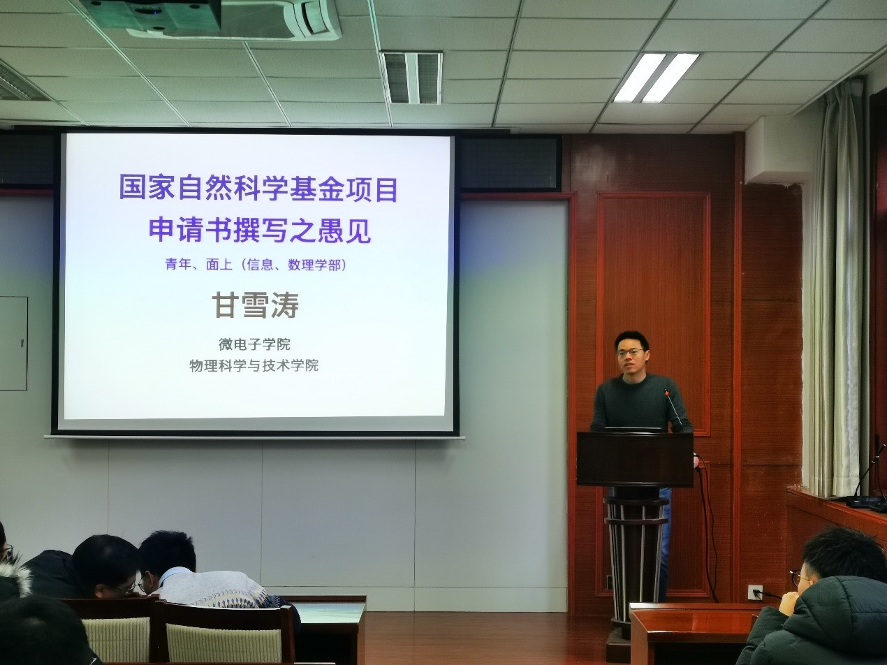甘雪涛教授结合自己的申报经历,根据青年教师实际发展需求,从“为什么申请自然科学基金”的问题出发,强调:自然科学基金是青年教师实现高校“育人、创新”目标的长期保障,同时对于青年教师自身而言是立足高校的敲门砖,提高自身在科研领域学术影响的有效途径。鼓励青年教师要抓住机遇,同时以积极良好的态度对待自然基金申报书的撰写。随后,甘教授围绕“写什么,怎么写?”的话题进行了深入浅出地分析。并针对项目的题目、摘要、立项依据、研究内容、研究目标、以及拟解决的关键科学问题、拟采取的研究方案及可行性分析、项目的特色与创新之处、年度研究计划及预期研究结果等内容进行了详细介绍。