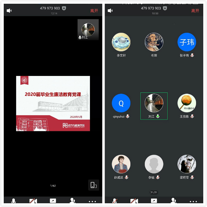 党委副书记刘江老师通过腾讯会议在线上为同学们讲授了以廉洁教育为主题的党课。