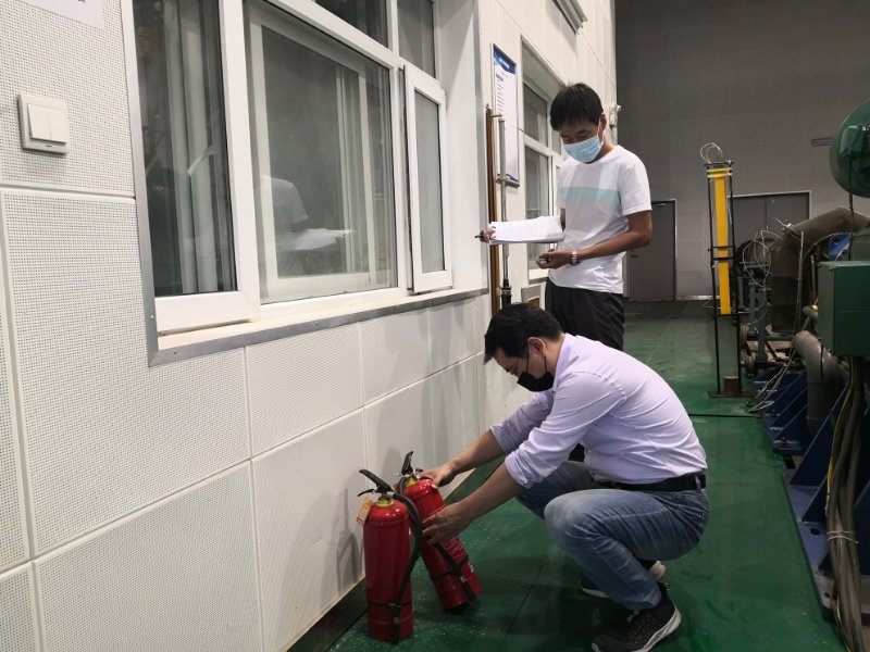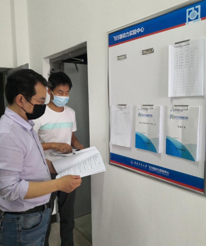 副院长缑林峰、科研办公室主任陈飞、科研实验室管理员董明涛组成检查小组对飞行器动力实验中心进行安全检查。
