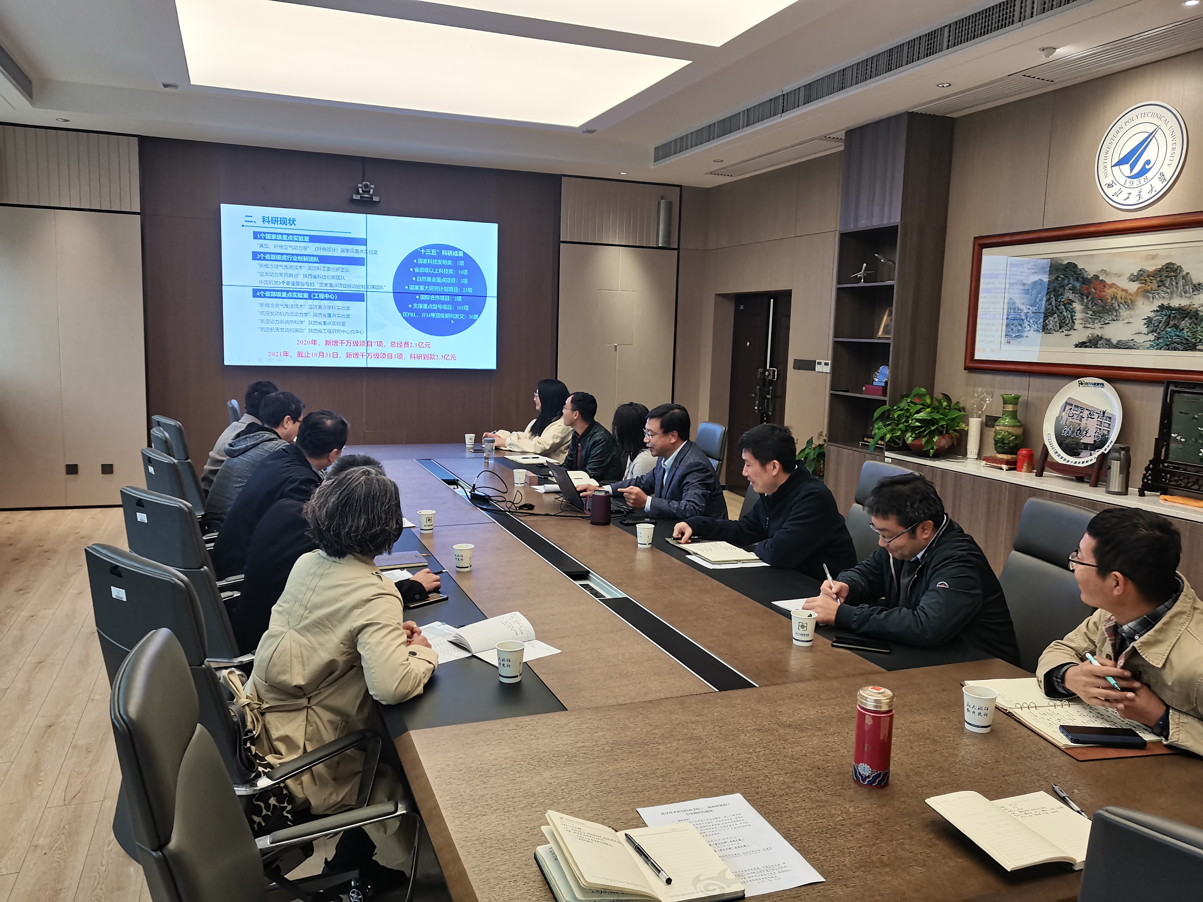、科研现状、科研保障体系、科研规划四个方面介绍了学院科研保障体系情况。依托相关平台,学院培养的科技人才在国民经济建设和国防科技领域做出了重要贡献。目前,学院飞行器动力实验中心有1个国家级重点实验室、4个省部级重点实验室(工程中心)和20个专业科研实验室,实验室涵盖航空发动机总体、气动与声学、传热与燃烧、结构与强度、控制与测试、空气滑油系统以及爆震、超燃冲压等新概念发动机方向。在“十三五”期间和“两机”专项中,学院积极布局规划科研平台建设,并取得了一系列成果,后期学院将深化基础研究,培养后备拔尖人才,为“十四五”打好基础。学院积极整合全院力量、联合其他单位,希望能够牵头争取到更多的科研平台;同时,在国际合作开展科学研究方面,学院正积极寻求新的突破。