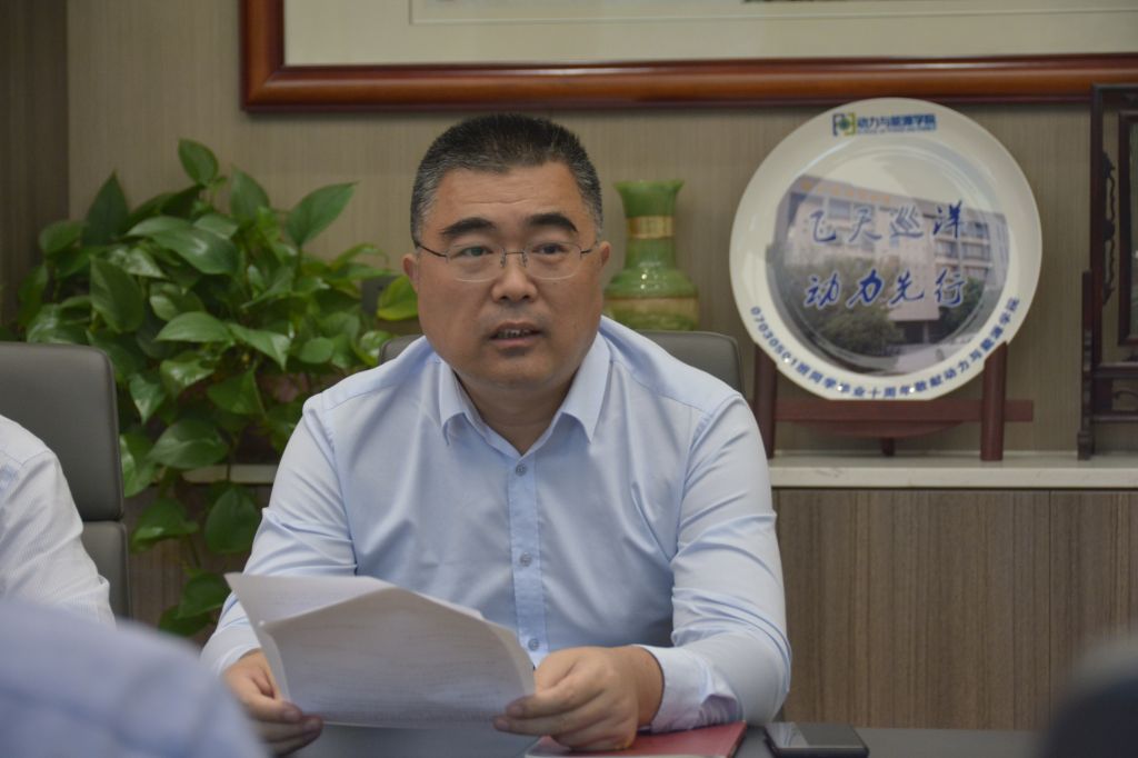 新教师代表郭恒杰老师讲话。表示十分高兴加入动能学院大家庭,对新角色充满期待,对在这一全新平台上开展工作充满干劲。