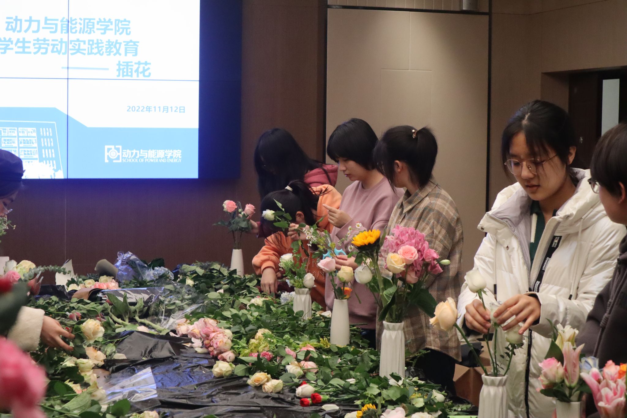 组织开展了以插花与衣物收纳为内容的学生劳动实践教育、共建文明宿舍活动。