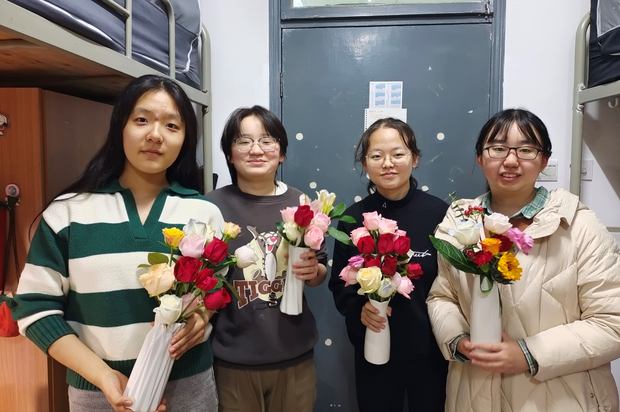 苏霍姆林斯基说:“一个人能在劳动的物质成果中体现他的智慧、技艺、对事业的无私热爱和能为自己的成果而自豪。”同学们纷纷将自己插花作品、收纳成果带进宿舍,共同营造整洁、温馨、安全的文明宿舍,共同分享花艺之美、归纳之洁,体悟劳动实践的快乐。