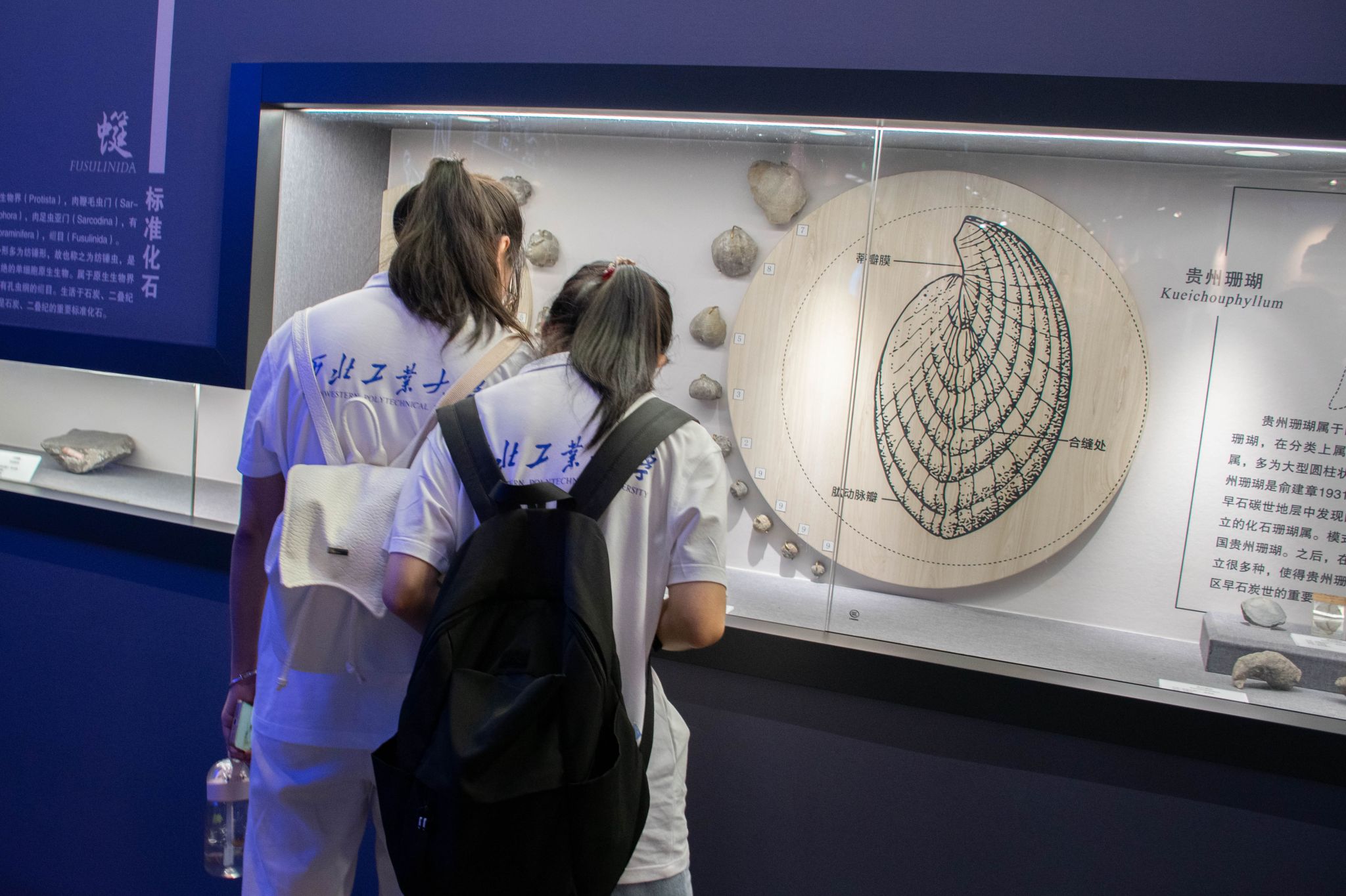 7月13日下午,“我心澎湃”实践队走进贵州省地质博物馆学习调研。实践队员从化石实物展品以及相关介绍中感受到沧海桑田的自然地理变化。在地球历史长河中,贵州经历了复杂的海陆变迁,不同的环境造就了多样化的生物面貌。贵州的岩层完好地保存了这些地质历史中匆匆的时间过客,为多彩贵州增添了丰富的精美化石遗存,讲述着贵州地质历史的远古故事,记录了生命演化的精彩乐章,使贵州成为享誉世界的古生物王国。
