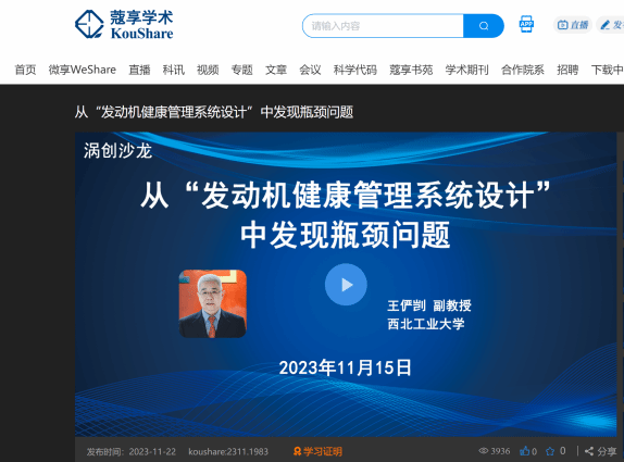 据专业技术管理部曾部长回忆:航空动力科创中心历史上第一次开展线下沙龙活动,就是王俨剀主讲“发动机故障诊断”主题交流,现场讨论气氛热烈。2023年7月,科创中心首次面向全网直播的技术沙龙,恰巧又是王老师的 “发动机健康管理系统设计”讲座,生动的讲述让直播人气成绩斐然。