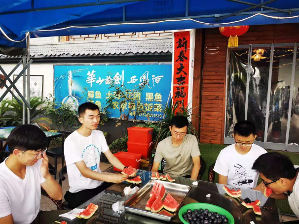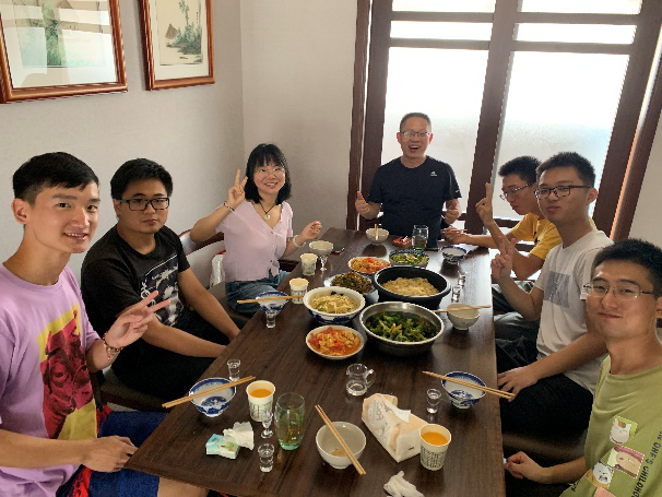 暑期炎炎,王老师不忘来看望仍在教研室奋战科研的学生,并邀请大家到王老师家中做饭聚餐、把酒言欢。王老师准备食材,同学们自己动手,摘菜、做饭、刷碗一气呵成、其乐融融。炎热的夏季,王老师还会特批一笔“西瓜经费”,帮助同学们保持清晰冷静的头脑。心血来潮时,王老师会带着学生一起到农家乐游玩,或者驱车前往附近学生的家中进行探望。骑车踏青、游览校园更是家常便饭,年底还会举办课题组茶话会,师生同乐、共享联欢。