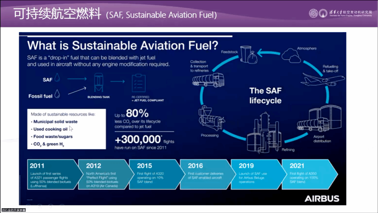 帅石金教授首先从宏观角度介绍了航空发动机减碳的机遇和挑战,接着从能源与动力两个层面分别详细介绍了航空发动机减碳不同的技术路线。能源层面重点介绍了可持续航空燃料(SAF)的优缺点以及氢能被应用于商业航空领域的方式,动力层面对涡电混合动力与全电动力两种不同方式进行了对比介绍。最后,帅石金教授与参会人员围绕航空发动机低碳化与电动化技术进行了热烈讨论。