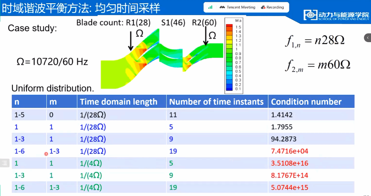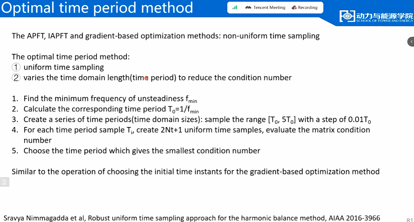 对于时域谐波平衡方法,在多基频非定常流计算中,最为重要的是时间采样。时间采样方法包括近似傅立叶变换方法,过采样方法,最优周期法等。