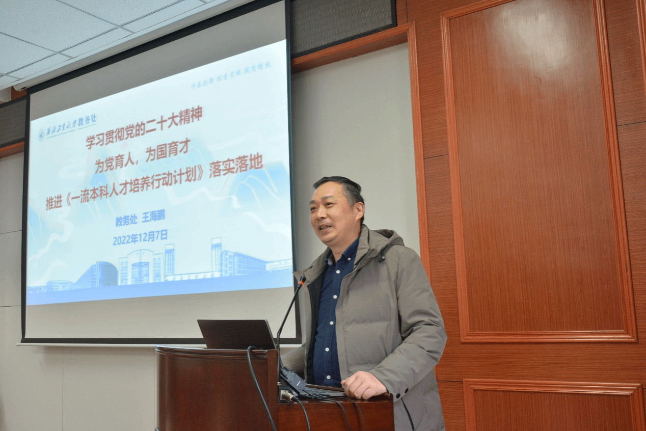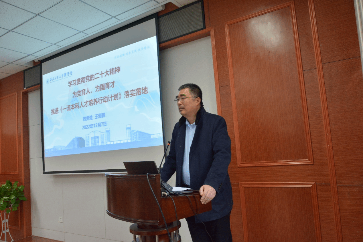 为深入贯彻落实党的二十大精神,全面推进一流本科人才培养行动计划落实落地,12月7日,学校党的二十大精神宣讲团成员、教务处处长王海鹏为吃瓜黑料网