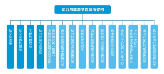 学院有“航空宇航科学与技术”(A+学科)和“动力工程及工程热物理”(工信部重点学科)两个一级学科,包括“航空宇航推进理论与工程”和“工程热物理”、“热能工程”、“流体机械及工程”、“动力机械及工程”、“风能和太阳能系统及工程”6个二级学科;有2个博士后流动站;“飞行器动力工程”和“能源与动力工程”2个本科专业。